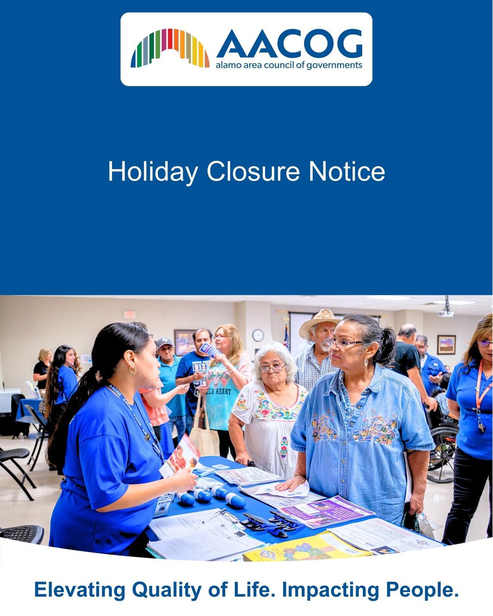 In honor of the MLK Holiday, AACOG Tower offices, Law Enforcement Academy offices, and the Alamo Service Connection phone lines will be closed on Monday, January 19.
